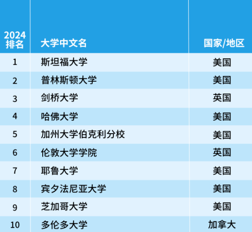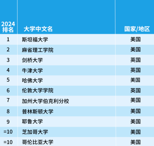 排在首位的依舊是美國斯坦福大學,耶魯大學和哥倫比亞大學今年躋身前十,而愛丁堡大學則跌出前十名,排名降至第12位。